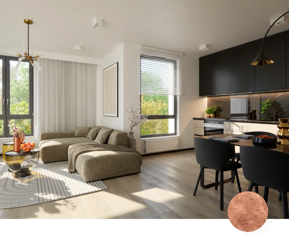 Wiemy, że proces samodzielnego wykończenia apartamentu wymaga dużego zaangażowania. Dlatego nawiązaliśmy współpracę partnerską z pracownią wnętrz KODO. Projektanci pracowni KODO stworzą kompletny projekt wykończenia i aranżacji wnętrz z uwzględnieniem Twoich upodobań estetycznych oraz oczekiwań. Wysokiej jakości materiały wykończeniowe i kreatywne rozwiązania zachwycą Cię nie tylko funkcjonalnością, ale również formą. Aranżacja przestrzeni pod klucz z doświadczonymi projektantami i ekipami wykończeniowymi to gwarancja wymarzonego efektu.